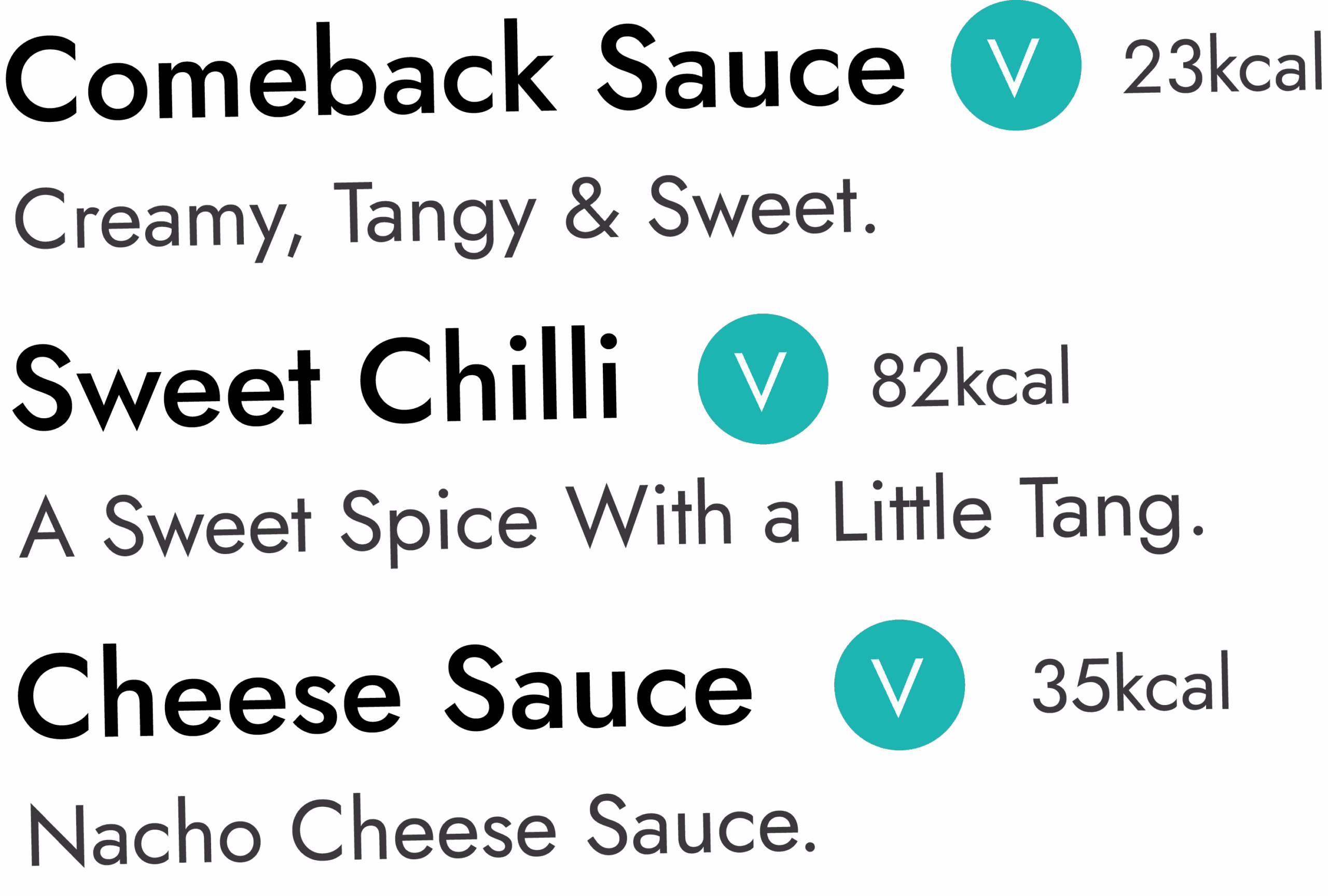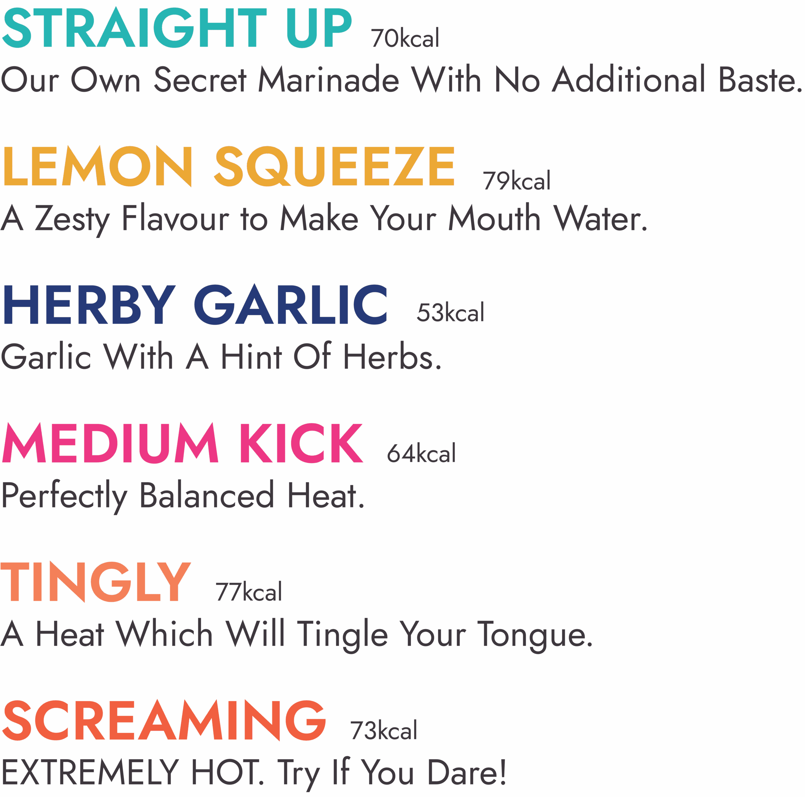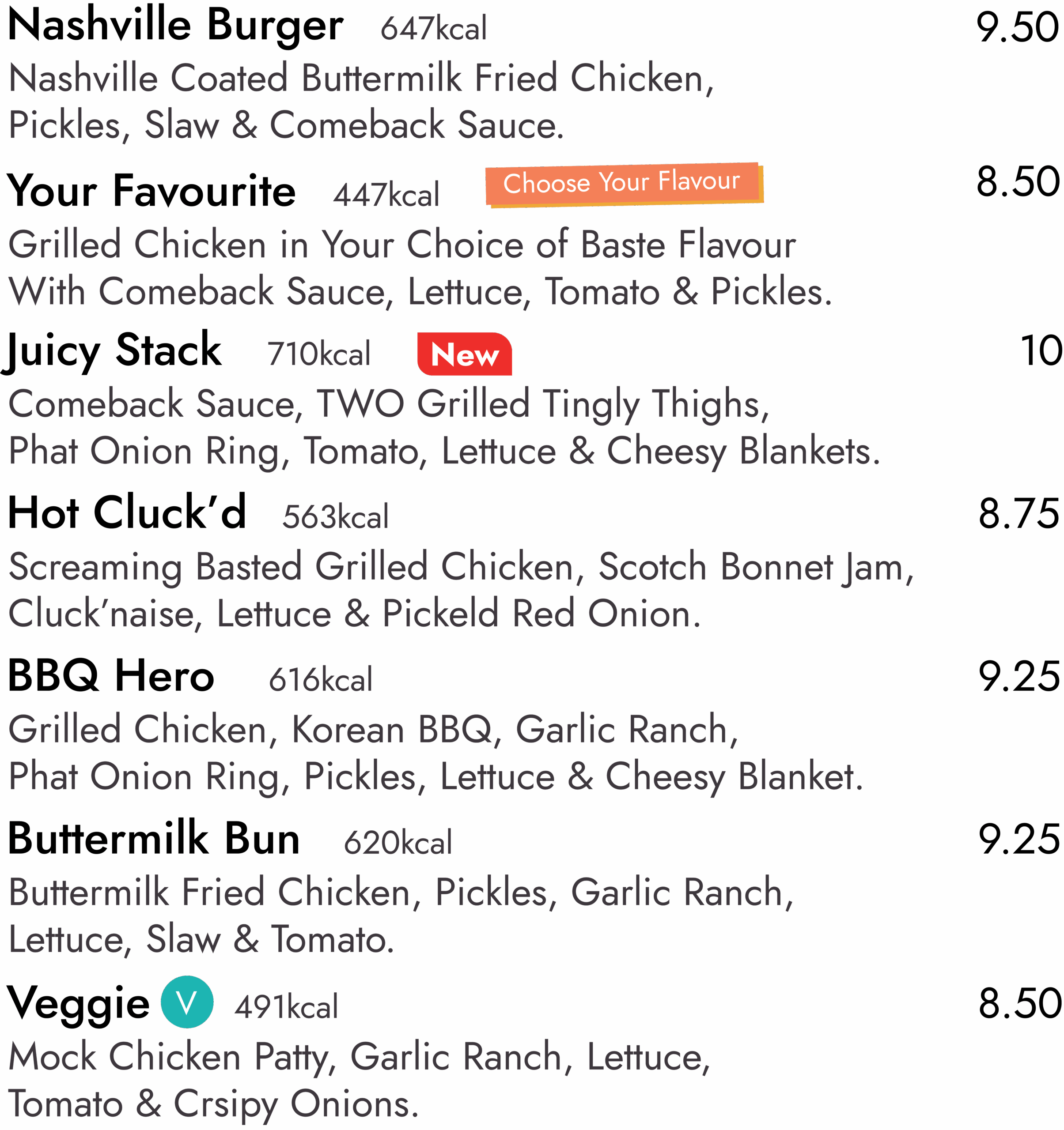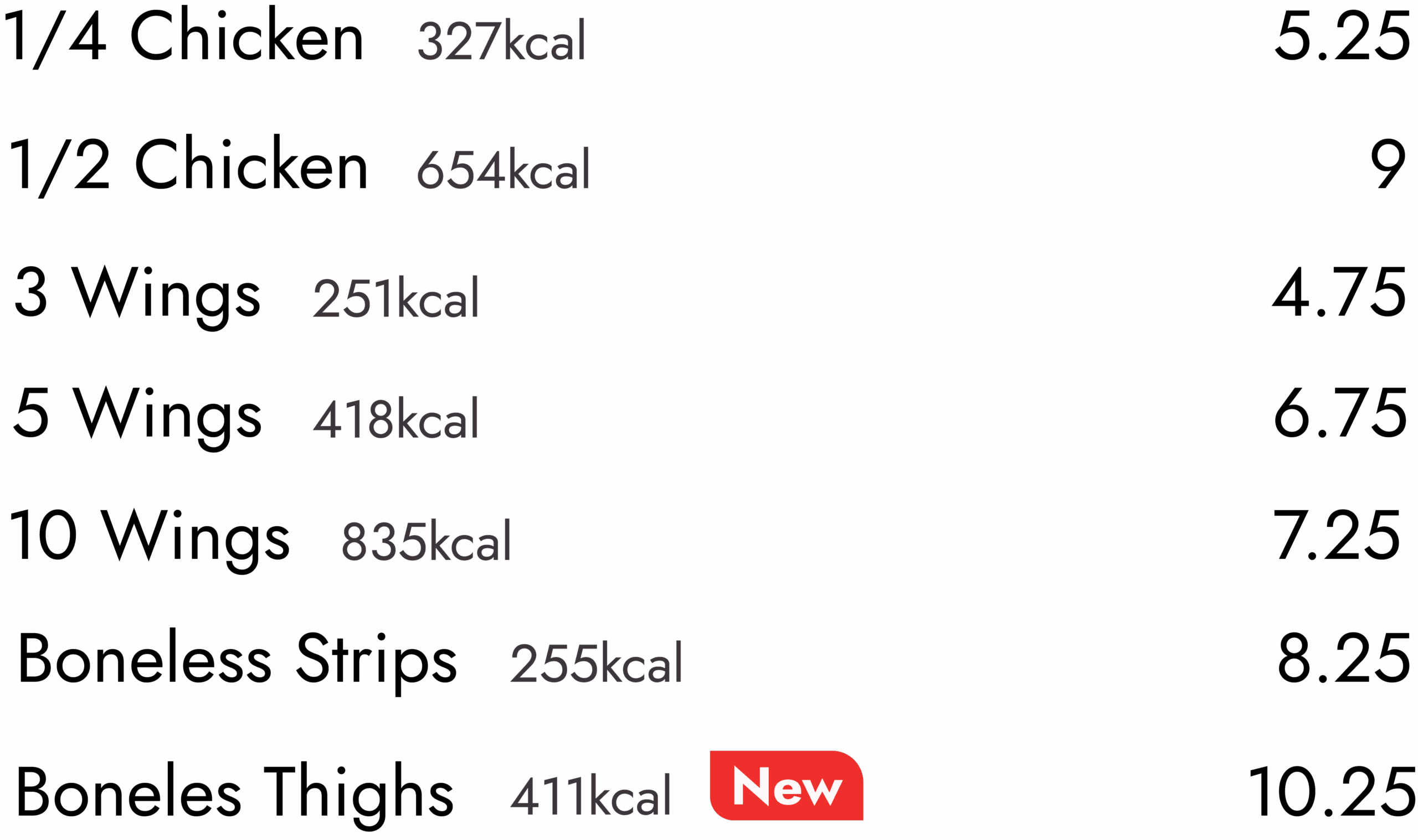 Despite the great care taken by our supplier, our boneless menu items may still contain bones. Items from our Vegetarian Collection menu are cooked and prepared alongside our Chicken and Meat products, and we cannot guarantee against cross-contamination. Calorie content may differ based on the sides and sauces chosen. our health and safety are our top priority, and your cooperation and understanding are appreciated.